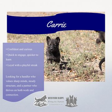 • Ideal for handlers seeking a spirited, adaptable female with working potential