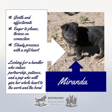 • Ideal for handlers seeking a thoughtful, emotionally attuned pup with working potential.